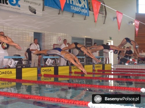Basen sportowy - to 6 torów o szerokości 2 m oraz dodatkowy 7 tor (o szerokości 3 m i głębokości 0,9 m) z pochylnią ułatwiający wejście do wody osobom niepełnosprawnym oraz wszystkim z problemami komunikacyjnymi. Dodatkowo zamontowano windę dla osób poruszających się na wózkach inwalidzkich oraz inne elementy niezbędne do utrzymania charakteru basenu sportowego. Temperatura wody regulowana jest elektronicznie i wynosi 28°C dla pływania rekreacyjnego i nauki pływania oraz 26 - 27°C w czasie zawodów sportowych.